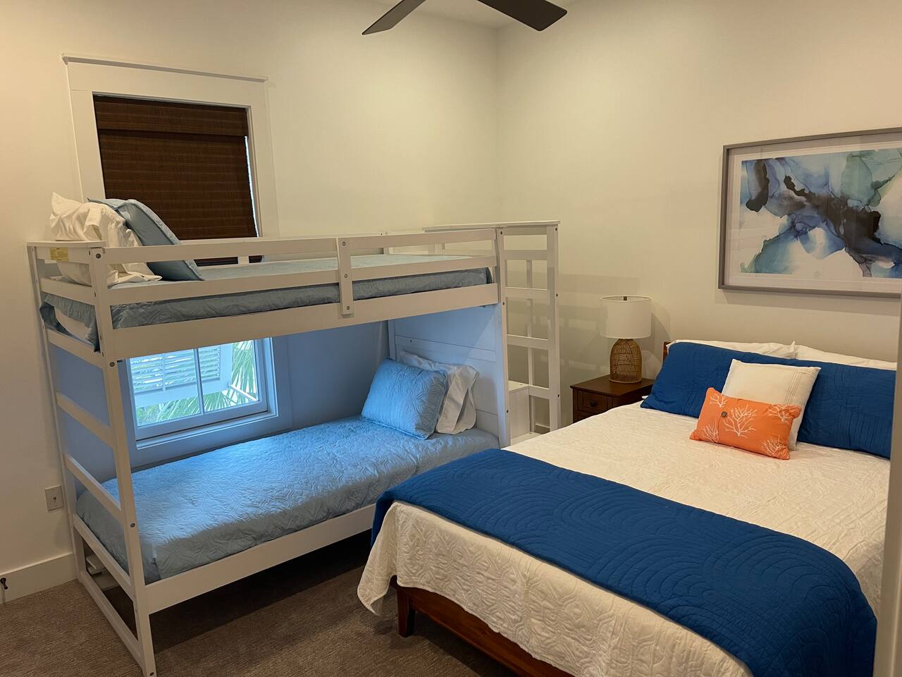 Welcome to Emerald Shores Santa Rosa Beach House! Thank you for exploring our property for your upcoming holiday! What sets this listing apart from others on Airbnb? The key distinction lies in the fact that this is one of our cherished homes, a space we genuinely inhabit at various times throughout the year. Its layout and setup reflect our personal preferences, crafted from a perspective of enjoying our time living, cooking, relaxing, and sleeping here. We believe that if we find comfort and delight in this home, you will too. Meticulously chosen furnishings, a well-stocked kitchen, premium mattresses, and thoughtfully curated details contribute to making this house feel like a true home. Our commitment is to provide an experience far beyond the typical short-term rental, as this residence is an authentic reflection of our lifestyle rather than an investment property designed solely for temporary stays. Take a moment to peruse the reviews, and you'll likely discover that choosing this property for your stay is a fantastic decision for you and your family. With a hosting history dating back to 2010, we bring a wealth of experience to ensure your visit is seamless and enjoyable. We eagerly anticipate the opportunity to host you, and as always, feel free to reach out with any questions before making your reservation. We take pride in our prompt and attentive communication, so you can expect a swift response. Once again, thank you for considering our property. Now, let's delve into more details about our home... You will fall in love with this immaculate home with three private bedrooms and bathrooms. The house is in a quiet, gated community with gorgeous clubhouse, pool, hot tub, and tennis courts and backs up to a quiet cypress grove. As you enter the front door you enter the main entertainment area of the house with wood floors and coffered ceilings. The open concept first floor makes entertaining simple. Stainless steel appliances accent the gourmet kitchen with seating for four. Your dining room flows right off of the kitchen and has seating for and additional six people. Enjoy watching the flat screen TV in your comfortable living room with gas fireplace or enjoy refreshments in the first floor screened in porch. The first floor also has a second primary bedroom with a queen bed, en suite bathroom, and TV. The main primary bedroom is located on the second floor. Your spacious bedroom includes a King bed, TV, coffered ceilings and beautiful gas fireplace. Want to relax in the trees? Enjoy relaxing on the second floor screened in porch located directly off the main primary bedroom. The primary bath has two sinks and a luxurious walk-in shower. The second floor has a third bedroom that sleeps four (one Queen bed and a bunk bed with two twin beds) and has its own private bathroom and TV located in the room. A full size washer and dryer are also located on the second floor for your convenience. We provide complimentary high-speed internet if you do have to work or study remotely during your stay. We also have a wifi printer in the master bedroom. In the back yard, we provide a propane gas BBQ grill and grilling tools for your cooking enjoyment. We do ask that, if you do use the grill, you please clean the grill for the next guest prior to your departure. Thank you for doing this for those that come after you, just as it was done for you before your arrival. We provide six beautiful Priority Coast cruiser bikes with baskets that are included with the house (save a lot of money by not having to rent bikes!). You'll get the code to the bike locks once you book. The bikes are on a rack in the front of the house. New for 2026, we also have a brand new street legal, six person electric golf cart that you can rent (for $100/day for 6-7 day stays and $1,200/month for 30-31 day stays) for your stay. It’s got lights, sound system, premium seating, and a fold down back seat that is perfect for hauling the beach chairs, umbrellas, and your cooler (all of which we provide) to the beach - 5 mins away! We also provide six beach chairs and three beach umbrellas included with the beach house. The closest beach access is Stallworth Lake (no toilets/showers), and the next closest (with toilets/showers) is Walton Beach Access, which is just a 5 minute drive (your car or our optional golf cart) from the house. You're just minutes from one of the most beautiful beaches in the world! Cypress Dunes and its surroundings areas are perfect to explore on a bike. Miles of paved trails along the beaches of South Walton are ideal for biking during your visit to Cypress Dunes. There are over 18 miles of scenic 30-A bike trails that wind through the area’s coastal dune lakes and villages. The beautiful white sandy beaches of the Gulf of America are about a 12 minute walk, 5 minute drive/cart ride, or 8 minute bicycle ride to public access (Dune Allen Beach Access) with free parking, public bathrooms and showers and life guards on duty March thru September. The Cypress Dunes Amenity Center offers an infinity edged swimming pool (heated in the winter months), jetted hot tub/spa, outdoor fireplace, homeowner clubhouse, fitness center, & a second level sunset deck where incredible views of the Coastal Dunes Lake & the Gulf of America are always found. Cypress Dunes community also features a recreational lawn area & tennis courts (we provide four tennis rackets and tennis balls). Take a stroll along the wooden boardwalk & you could catch a glimpse of some of the wildlife that is native to our area. Connecting to Phase II of Cypress Dunes, this rustic walking path takes you above the Cypress pond, where you’ll find another resort style swimming pool with a cascading waterfall. NOTE: RVs and trailers are not allowed in the community. DO NOT bring an RV or a trailer into Cypress Dunes- there is a $200/day fine if you do so. Things to do and places to see in the area: Area Golf Courses: Santa Rosa Golf & Beach Club Sandesti