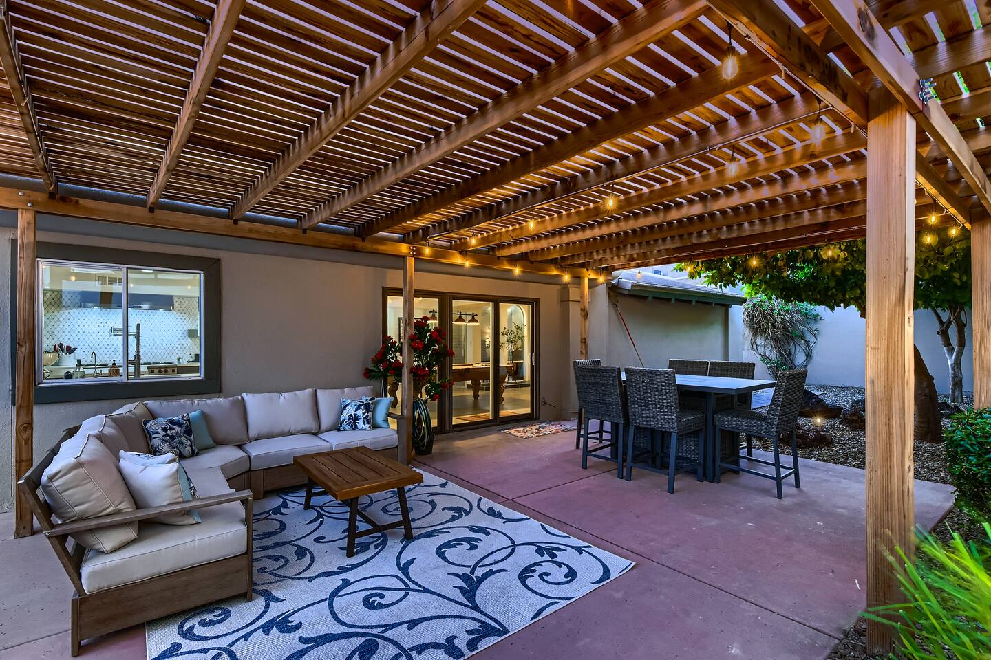 Welcome to Villa Escuela! Thank you for exploring our property for your upcoming holiday! What sets this listing apart from others on Airbnb? The key distinction lies in the fact that this is one of our cherished homes, a space we genuinely inhabit at various times throughout the year. Its layout and setup reflect our personal preferences, crafted from a perspective of enjoying our time living, cooking, relaxing, and sleeping here. We believe that if we find comfort and delight in this home, you will too. Meticulously chosen furnishings, a well-stocked kitchen, premium mattresses, and thoughtfully curated details contribute to making this house feel like a true home. Our commitment is to provide an experience far beyond the typical short-term rental, as this residence is an authentic reflection of our lifestyle rather than an investment property designed solely for temporary stays. Take a moment to peruse the reviews, and you'll likely discover that choosing this property for your stay is a fantastic decision for you and your family. With a hosting history dating back to 2010, we bring a wealth of experience to ensure your visit is seamless and enjoyable. We eagerly anticipate the opportunity to host you, and as always, feel free to reach out with any questions before making your reservation. We take pride in our prompt and attentive communication, so you can expect a swift response. Once again, thank you for considering our property. Now, let's delve into more details about our home... ☆☆ HIGHLIGHTS ☆☆ ✹ 3 stylish bedrooms w/ king-sized beds + smart TVs ✹ 2 full bathrooms + 1 half bath ✹ Modern kitchen w/ stainless steel appliances ✹ Complimentary coffee bar ✹ Open-concept living room w/ gas fireplace, pool table + flat-screen smart TV ✹ Private heated pool + hot tub ✹ Spacious outdoor living area w/ mister system, grill, fire pit + more ✹ High-speed wifi + dedicated workspace w/ printer ✹ Secure free parking for 2 vehicles in the garage ✹ Pet-friendly ✹ Pack & Play and high chair ✹ Washer + dryer ✹ Prime location in a great neighborhood w/ easy access to local attractions Eager to Read More? Here Are A Few Kind Words From Our Previous Guests: “Peter was amazing in communicating with us. He made sure to check in during our stay and was swift in responses. The house was beautiful and peaceful and perfect for a getaway!” - Jasmine “This house was PERFECT!! super quiet neighborhood, loved the pool, close to everything and the bed was the most comfortable. LOVED this house! Peter was a great host.” Jason and Michelle “Peter was a fantastic host that made things really easy. This house is absolutely beautiful. It’s cozy, well decorated like someone’s own home, and great amenities. One of the nicest homes you’ll find on AirBNB anywhere near this price point. Centrally located in Scottsdale between Old Town and north Scottsdale. Highly recommended!” - John ★★ BEDROOMS ★★ This spacious home is the perfect spot for large groups thanks to the three large bedrooms and a queen-sized sleeper sofa in the living room. No matter which room you claim as your own, you can look forward to exceedingly comfortable beds, luxe linens, thoughtful decor, and a flat-screen smart TV to help lull you to sleep. ✹ Primary Bedroom: King-sized bed, seating area, dedicated workspace w/ wifi printer, ensuite bathroom + walk-in closet ✹ Bedroom 2: King-sized bed ✹ Bedroom 3: King-sized bed, access to private patio ✔ Flat-screen smart TV in each room ✔ Pull-out sofa w/ new queen-size memory foam mattress in living room for additional guests ★★ BATHROOMS ★★ The primary bedroom has a private ensuite bathroom, while the second and third bedrooms share easy access to another full bathroom and an additional half bath. Each bathroom offers a sleek and stylish reprieve to help you relax as you get ready each morning and turn down each evening. ✹ Bathroom 1: Ensuite bathroom to the primary bedroom; dual sinks, large walk-in shower with multiple shower heads and jets, walk-in closet ✹ Bathroom 2: Full bathroom with dual sinks and a shower/tub combo ✹ Bathroom3: Half bath ✔ Fresh towels ✔ Laundry room w/ full-size washer and dryer + iron and ironing board ★★ KITCHEN & DINING ★★ Our modern gourmet kitchen is a chef’s dream, with new stainless steel appliances, sleek and spacious countertops, all the basics for meals both simple and extravagant, and even a wine fridge and complimentary coffee bar! ✔ Modern kitchen w/ stainless steel appliances (including a 60" Wolf range) ✔ Complimentary coffee bar w/ beans, a grinder, drip coffee maker + creamer ✔ Basic cookware + dinnerware ✔ Oversized dining table w/ seating for 6 ✔ Counter seating for 4 ★★ LIVING ROOM ★★ The open kitchen and dining area flow seamlessly into the living room, creating a bright and airy space to relax and hang out with your crew. Kick back and relax on the comfy sofas as you stream your favorite shows on the flat-screen smart TV, or curl up in front of the gas fireplace with a good book. High, beamed ceilings and plenty of natural light create a lovely ambiance. ✔ Gas fireplace ✔ Flat-screen smart TV ✔ Comfy seating options ✔ Pool table ★★ OUTDOOR SPACE ★★ Enjoy the famous Arizona sunshine from the comfort of the spectacular outdoor area. The mister system and shaded seating areas will keep you cool on the warmest of days, but the best way to cool down is by taking a dip in the private pool. There are also sun loungers, a gas grill, an outdoor dining area with a fire pit, and a brand-new six person hot tub with Bluetooth speakers. ✔ Private pool (+$25/day for pool heating for reservations October through April) + hot tub ✔ Gas grill + outdoor dining area ✔ Sun loungers + comfy seating options in the shade ✔ Firepit ✔ High end mister system + shaded trellis ★★ ACTIVITIES/ATTRACTIONS ★★ While it may be tempting to stick 