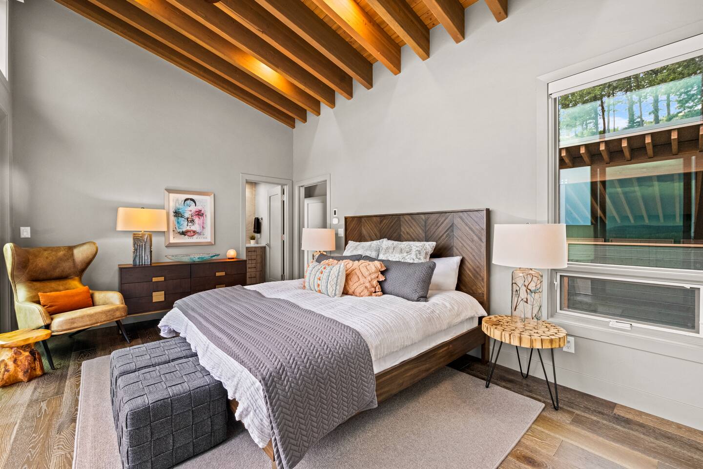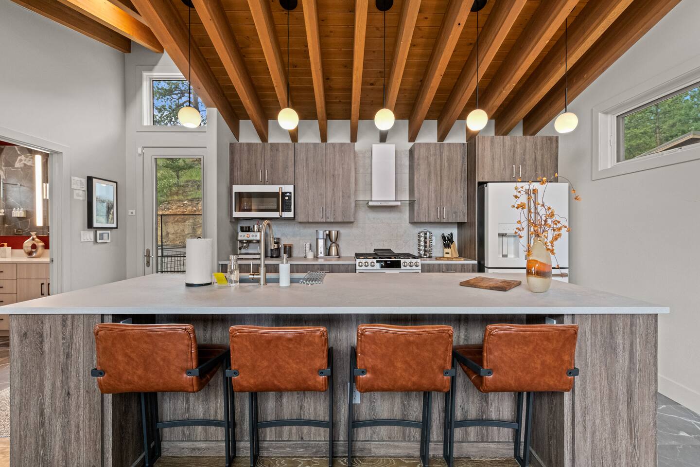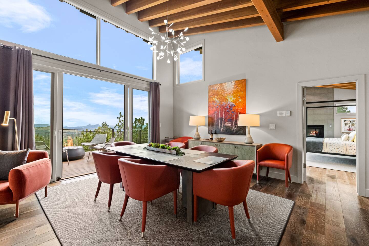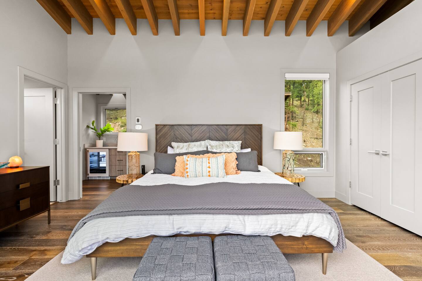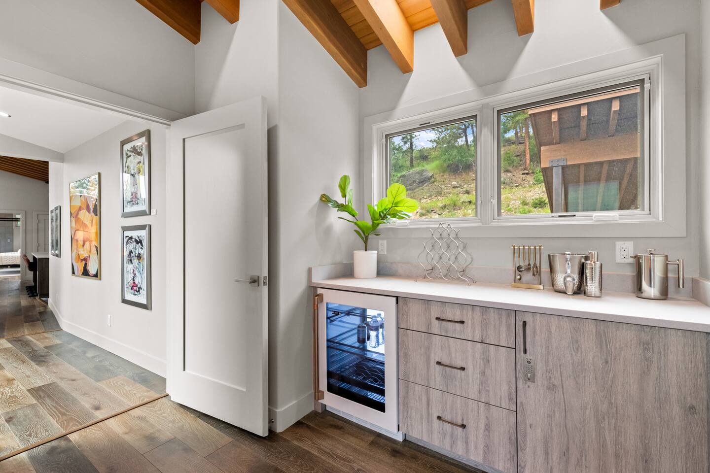 Note: The main house has two bedrooms and two bathrooms and is available year round. The Glamping Tent (the third bedroom and third bathroom) is available from April 15 until October 31 each year. During the open days in April and October, the shower will not be operable and the sink will use bottled water instead of the faucet due to the risk of freezing during these months. The waterless dry flush toilet will be available at all times. Venture to the vibrant forests of colorful Colorado when you book this luxury treehouse + glamping tent that sleeps up to eight in Bailey. Perched on the side of a mountain overlooking Deer Creek Valley, this home provides incredible views both inside through the floor-to-ceiling windows and outside on the three huge decks. Whether you're visiting for a quiet weekend in the woods or a family ski trip to the nearby Breckenridge resort, this mountain cabin is sure to be the perfect home base! This is a LUXURY treehouse - one of a kind in the United States, if not the world that sleeps 8 between the treehouse and the new for 2023 glamping tent! Two bedrooms and two bathrooms with nearly 1,600 square feet of luxurious furnishings and finishes with nearly 1,000 square feet of deck space to enjoy the beautiful outdoors and scenery of Colorado. Plus new for 2023 starting May 1st, we added a 320 square foot luxury glamping tent featuring a gas fireplace, king bed, luxury mattress and linens, coffee maker, fridge, toilet, sink and shower! It also has a front deck with two Adirondack chairs and a fire pit - and the best view of any glamping tent we know about! Why book a stay at the Zen Treehouse? When we saw the #1 Airbnb property a few years ago was a small treehouse in suburban Atlanta Georgia, we thought we could do better...and Zen Treehouse is the result! The vision was to create a luxury escape from the stressors of the world, where people could go to relax and enjoy nature and the many amazing luxury amenities that Zen Treehouse offers - a professionally designed interior and exterior space that is luxurious, spacious and comforting. Enter the drive with a secure, coded driveway gate that, when it shuts behind you, represents shutting out the rest of the world and soaking in the amazing feeling that you get when you visit Zen Treehouse. Relax by one of the two exterior fire pits on one of the four large decks the house offers. The main deck also provides an outdoor dining space for six with amazing views over Deer Creek Valley - from the back decks, you look out over a forest of trees for miles and miles. The newly completed (opened May 1st 2023) Zen Glamping Tent sleeps two in true "glamping not camping" luxury. King bed, fine bedding, gas stove/fireplace for ambiance and warmth, bathroom with toilet, sink and shower, and coffee and water bar. The deck features two Adirondack chairs, a fire pit, and beautiful views over the valley. We also have a corn hole set up outside the tent for you to enjoy. ***New August 15, 2024 - New evaporative coolers for each of the two bedrooms and the main living area of the Treehouse. Summers are getting warmer in Colorado, so we just added these for the warmer summer months.*** Our base price is for up to six guests. Additional guests--up to eight total April through October--require an additional fee of $50/person/stay (collected after guest count is confirmed at booking). The base price is adjusted in the winter months since the house can only accommodate six. There is nothing like this home anywhere in Colorado! Enjoy an afternoon or evening by the party deck where you can hot tub, enjoy the barrel sauna, grill some steak, drink some wine, and converse around the fire pit, all the while enjoying the stunning views of Deer Creek Valley. When it's time to go to sleep, enjoy your own Sonos system in the bedroom where you can play relaxing sleep music and enjoy the warmth of the fireplace while you sip some tea or enjoy a glass of wine before bed. Then, flip a switch and all the windows in your bedroom close with blackout roller shades - only to be opened again when you are ready in the morning. Relax with us for a few days...you'll be glad you did! Amazing views over Deer Creek Valley - from the back decks, you look out over a forest of trees for miles and miles. There is nothing like this home anywhere in Colorado! Enjoy an afternoon or evening by the relaxation deck where you can hot tub, enjoy the barrel sauna, grill some steak, drink some wine, and converse around the fire pit, all the while enjoying the stunning views of Deer Creek Valley. The Zen Treehouse is only one hour from downtown Denver and only an hour and 10 minutes from downtown Boulder or Denver International Airport. The only part of the drive that is on a dirt road is the last five minutes. This is where an all-wheel or four-wheel drive vehicle is highly recommended. There are somewhat steep switchbacks that will take you, in those last five minutes, to the gate of Zen Treehouse, where luxury and relaxation await. This is a pet-friendly property that does require a non-refundable pet fee of $150 per animal. We also charge a $350 refundable deposit per dog (for up to 2 large or 3 small dogs) for stays at Zen Treehouse. This deposit is refunded within 2 weeks of departure if the cleaning is not excessive--beyond what is expected by the number of dogs staying--AND if no damages occur. The most common damages that result in forfeiture of deposit are scratches to the doors, door frames and walls, damages to screens, and lack of cleaning up after the dog(s). The best way to avoid these types of damages is to not close dogs into rooms or the house (if you are leaving), and if you do plan to leave your dog(s) at the house, having a kennel/kennels there is highly recommended. For damages, we pay our property manager for the time it takes to gather photos, contact guests, file claims with the booking platforms, and coordinate repairs, and we pay our contractor(s) 
